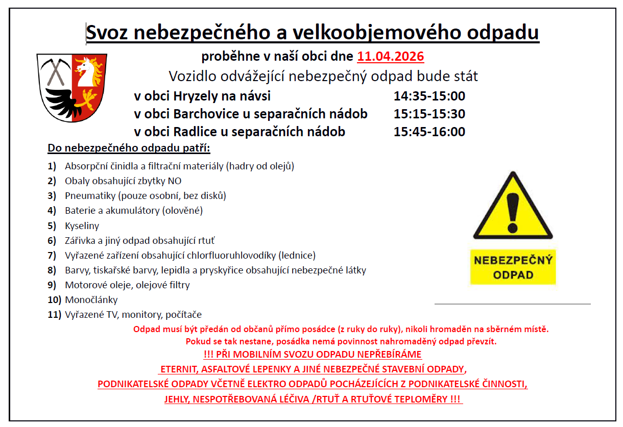 Svoz velkoobjemového a nebezpečného odpadu 11.4.2026